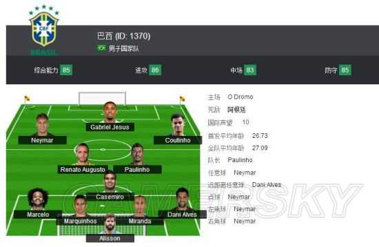 这支巴西队的前场三叉戟由绝对的核心球员内马尔,曼城新星热苏斯和巴萨的库蒂尼奥组成,兼具爆发力和控制力,三位球员既有极强的个人实力又有不错的配合默契,当然也少不了恐怖的得分能力。中场则是更偏向硬度和后插上的进攻能力,以此来保护前场三叉戟,但也可能因此少了一些创造力和向前输送的能力。后防线上马塞洛稳稳的占据了一个首发名额,他也会在左路与内马尔擦出火花。门将位置上在罗马队表现出色的阿利松应该会拿下一个主力名额。
