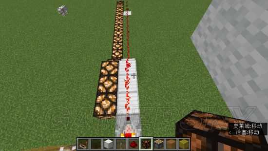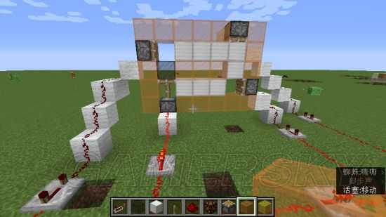 4.在两侧放置红石线,并用红石灯做检测。