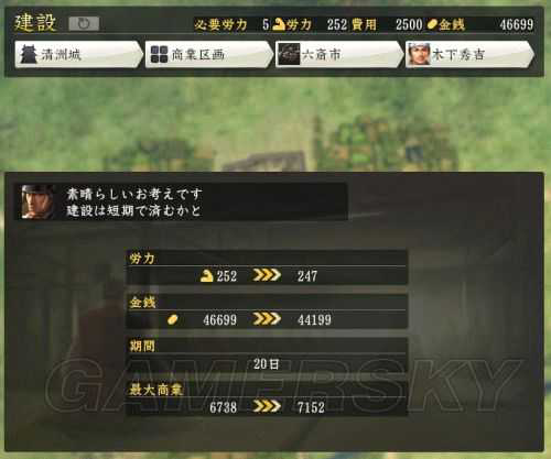 上图可以看到每块未建设的地都有三种属性,石高,商业和兵舎