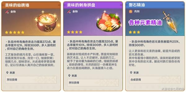 3.输出不够可以吃料理,给自己上增益buff!(同类型的,buff不能叠加,以最后吃的为准!)