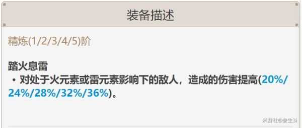 首先因为被动是踏火,所以多段反应会更适合对火弱消除的冰属性角色,打核爆的话就更适合水属性角色,打感电的话,水雷共存,所以水雷都行(刻晴行秋感电流)。