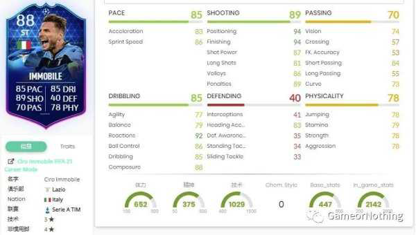 FIFA21TOTGS欧冠因莫比莱游戏内详细数值: