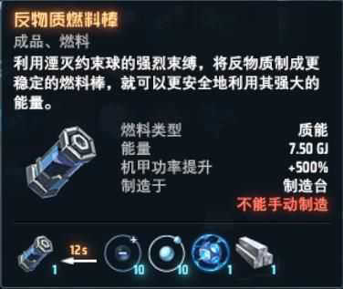 作为游戏最终的能源物质,我认为制作组还是设计的很好的。它结合了清洁能源和燃料能源的两种方式。先通过辐射光子,然后把光子转化,再做成燃料棒。方便携带,能量密度让人十分舒心。可以说就目前的游戏内容反物质棒已经遇不到对手了。)