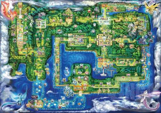 5号公路、6号公路、8号~18号公路、21号公路、23号公路、地鼠洞穴、月见山、宝可梦塔、无人发电站、宝可梦屋、冠军之路。