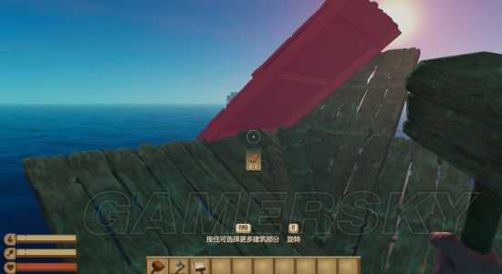 当我们要在一块侧板上建立再往内侧方向的侧板时如果想留暗格或者构造复杂造型时,也可以拍下木棒建造个平板然后向内侧方向建