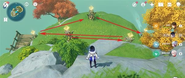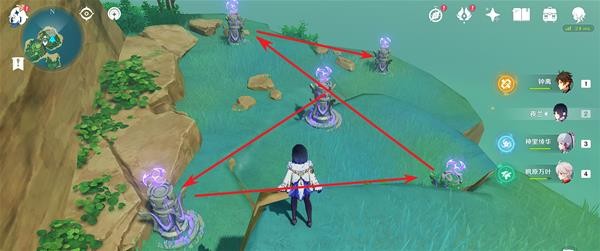 (7)解密完后,向南走有三个雷指针,旁边有一个雷矿可以给上雷元素附着,让指针指向突出部分就行了