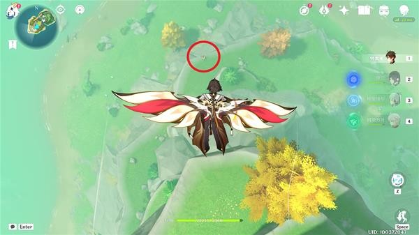 (3)拿完2号宝箱后,我们向对面的岛屿飞去,在半山腰可以看见一只仙灵(它的目的地是盆景小岛)
