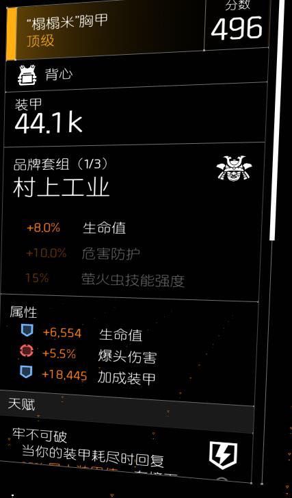 胸甲我选择村上一件,吃生命值加成,最关键的天赋牢不可破,下版本破甲后回复70%,对于喷子来说相当于多了一条命,带个复活巢,相当于3命,但是需要11蓝。下版本我的红词条洗一个12%的武器伤就能用了。
