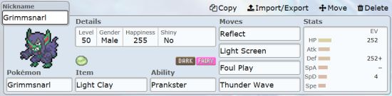 开墙手和原队伍一样选择了恶心巨魔,加满物耐后的生存能力十分可靠,基本能活着开出双墙并保留较多的血量,有时候甚至能开第二波墙。道具方面为了保证墙的作用最大化选择了光之黏土,技能方便除了双墙之外选用了电磁波来废掉对面速攻手的速度,单攻携带了欺诈来打一打对着巨魔自信剑舞/龙舞的强化手。