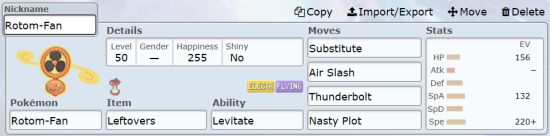 原队伍的强化手选择的是阴谋飞机,我这里换成了个人觉得更好用的电风扇洛托姆,并选用了替身剩饭的配置来针对受逼的各种骚扰技能。性格选用了胆小,分配了大量速度努力以超过极速的暴鲤龙,hp加到了替身剩饭最大化的实数值16n+1,剩余分给特攻保证输出。技能方面就是替身+阴谋+双本,常规用法就是在巨魔开墙后换上,在墙的掩护下强化特攻并通过极巨飞提速来完成推队。强化轴主要在碰到不好选出空间轴的队伍时选出,比如重暴很难处理的一些强力物盾如河马兽、辉石小珊瑚等等,替身阴谋电风扇都能吊打之。