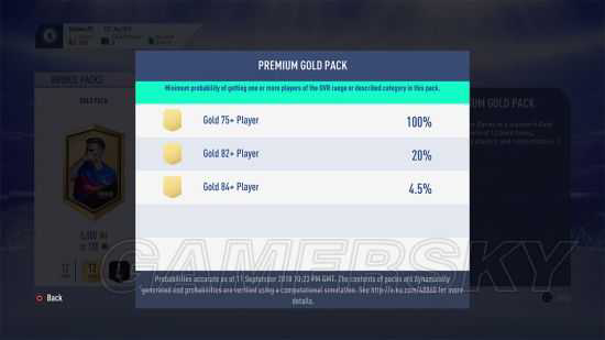 迫于压力,在FIFA19中,EA终于显示了每种卡包的爆率。因为在欧美现有的法律规定下,如果显示了爆率,就不会被归类为赌博游戏。