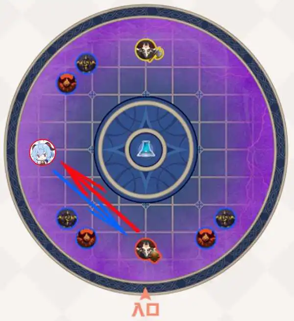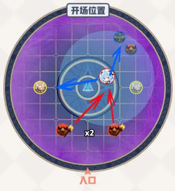 蓝色箭头:角色的攻击路线