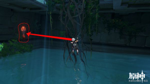 再先把游戏时间调到凌晨1:00,然后踩上去面前的压力机关,水就会往上涨。注意,等涨水停了之后先不要爬上藤蔓,先登上与水面平齐的平台,上面有一个火炬和一个华丽宝箱。