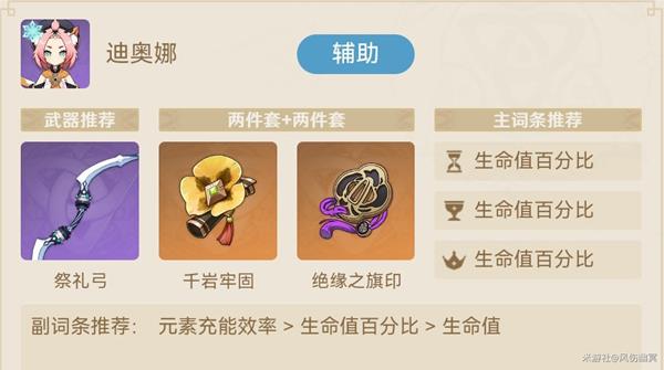 砂糖可戴教官套,也可换成迪奥娜,比如操作较差的小伙伴,迪奥娜有上盾和回血,并且满命也增精通,挂冰万叶大招染冰,跟香菱大招打融化。