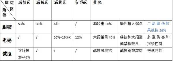 要提到的是,这里边的增益效果是非常多的,但是依旧会缺少几个乘区:减防区和减抗区(是她,就是她)