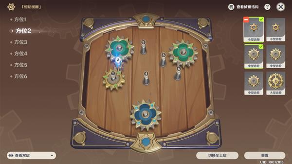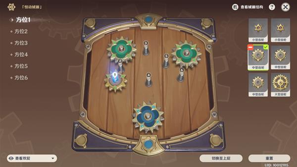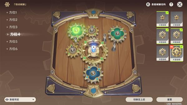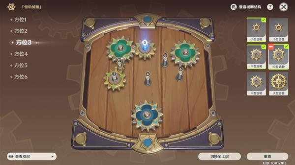 2.不同层的齿轮之间无法直接相互接合,我们可以通过切换查看上、下层来判断如何组合齿轮使其运作。