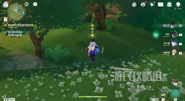 与村长对话后自动触发与阿托莎的对话,然后跟随任务指引前往阿托莎所指引的地方,自动触发对话。