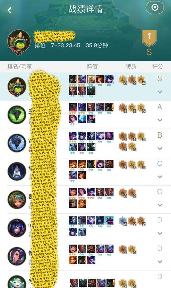调整之后终于吃鸡,战绩见下图:4海盗3枪3剑2骑(猪女被转了剑士),输出核心是德莱文,装备饮血、火炮、羊刀;天使装了龙刀;其他的都是垃圾装备。