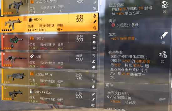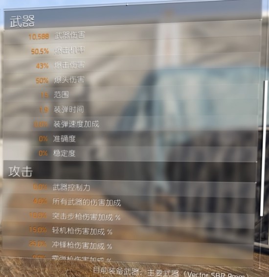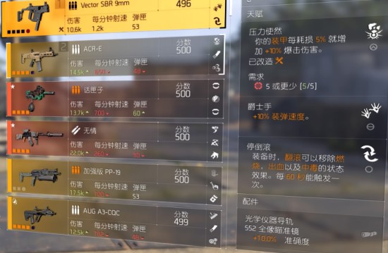主武器:只能是9mm带压力使然天赋的vector,第二天赋射速或者弹匣容量都不错。