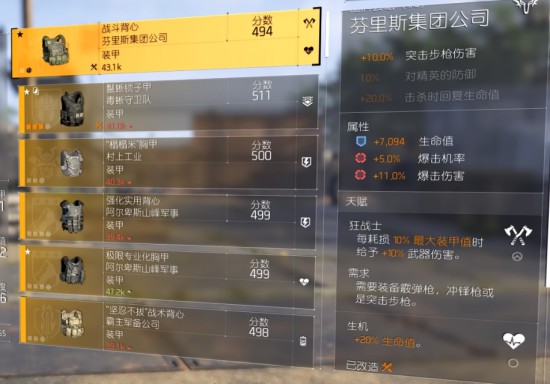 品牌选芬里斯,词缀最好有加生命和暴击率,天赋必须有狂战士最好有生机。