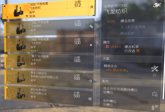 品牌最好是索寇洛夫,词条生命+暴击率,天赋最好有耐心满满(龟壳),这样能在高难度下倚靠掩体对枪。