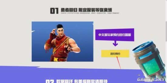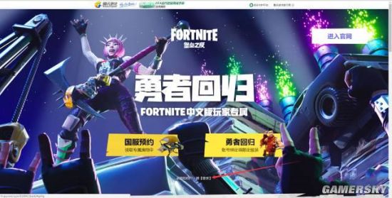 3、勇者回归链接即可跳转岛回归预约页面。回归预约按钮。即可成功预约,并将FORTNITE中文版数据迁回堡垒之夜国服。