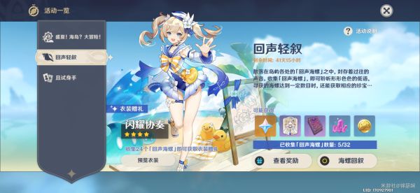 5.关于回声海螺,目前一天貌似只能收集五个(肯定要控制你收集的速度,要不然没办法把活动开这么久)大概需要五天的样子,就可以白嫖衣服了。不用太心急啦!