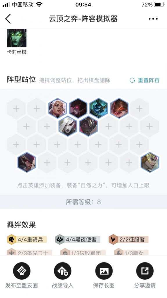 上述两套都是建立在法强装功能装较多时,那假如来了一大堆大剑怎么办?那就前期直接给克烈输出拉满,复活甲无尽饮血之类的,搭配凯南露露,凯南带这本鬼书。后期将克烈替换为诺手,凯南璐璐滚蛋,拉皎月开出4黑夜,但是这套在运营上要灵活,不能7人口认死理追,毕竟最后是冲9找2星诺手的。