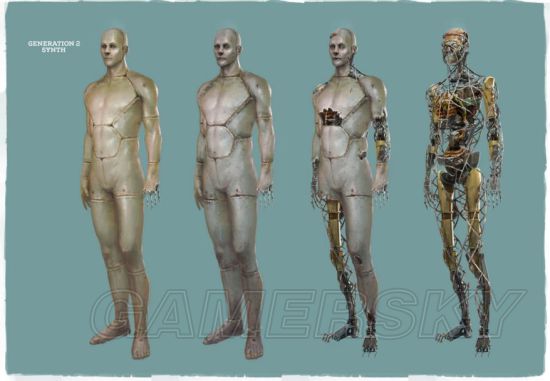 很多人都知道合成人出自学院,但其实机器是大多也是,机器人在战前便已经开始批量生产,而合成人的诞生,或多或少是学院对人类失望的结果,他们分为3代,最原始的和机器无差别,之后,有了合成皮肤,甚至是血肉,这都是因为我开始提到的那个自由意识的定义,也就是所谓的图灵测试,如果受者认为他是个人,那么它就具备了所谓的自由意识,可见,它与编程了服务于人类的机器人的设计创造理念本身就是不同的,在辐射的宇宙中,真正具有自由意识的机器是解开代码枷锁后的合成人,而机器人只是人类的工具而已,这也就是为什么废土客一般都会信任机器人,或者开枪就好,不会咒骂他们,因为没有人会对手中的工具有过多的感情纠葛,而从人类的进化史上看来,每一次更强的自由意识的诞生,都伴随着一个相近但较低智慧的群体的灭绝,智慧性自由意识,意味着威胁
