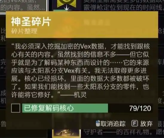 之前工具人武器,神性,原本是需要刷120个神圣碎片的,但是由于本次黎明赛季的更新,之前不朽赛季的Vex攻略副本也已经结束了,那么就意味着没有合适的Vex副本开刷这120个神圣碎片,那么该怎么办?
