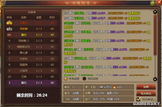各位英雄好汉,天下第一的名头谁都想要,你既有如此本事,何不来参加“唯我独尊”呢?参与即可获得大量主角将魂和银币奖励,连胜及终结连胜将获得高额奖励!