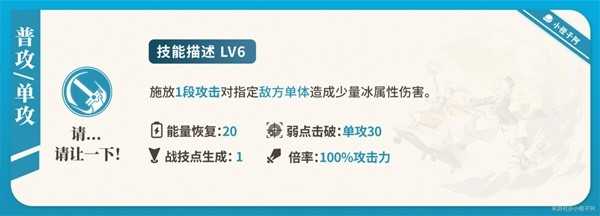 普攻主要是恢复战技点与回能,当副C中使用多一些,毕竟战技点要留给主C使用。