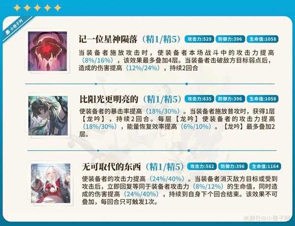 米沙可以使用的光锥还是挺多的,首先推荐选择高叠【记一位星神陨落】,其次是高叠的【鼹鼠党欢迎你】,其余光锥可根据自身光锥情况合理选择。
