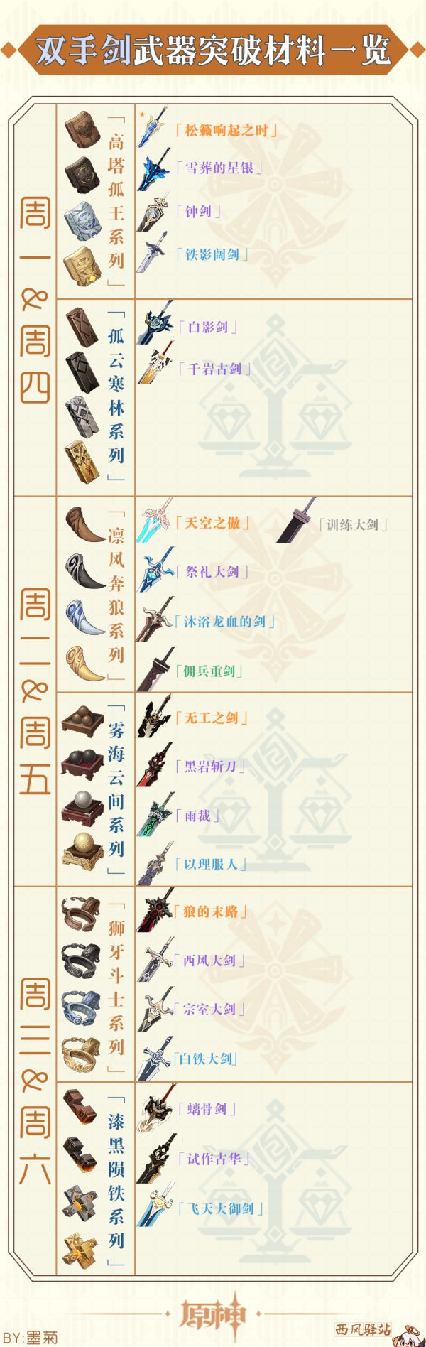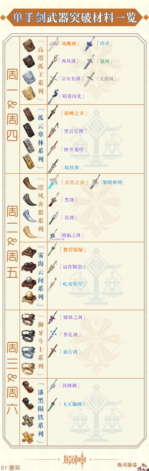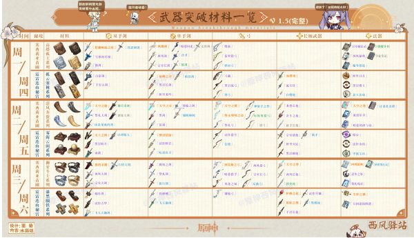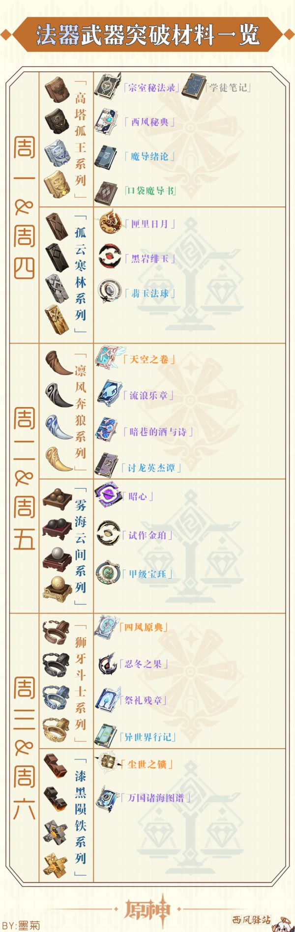 《原神》每个角色以及不同的武器都有不一样的突破材料,想要所以角色及武器突破材料表格的玩家请看下面“墨小菊ぃ”带来的《原神》1.5版全角色及武器突破材料一览,希望能够帮助大家。