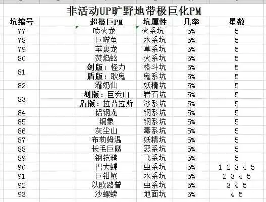 其中目前只有17个坑会出现超极巨PM(当然这是排除掉活动UP的那些PM 比如近期的蝶鸟蛇蚣龟)。