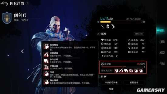 总结一下,当浸染值达到100后,佣兵将被随机挂上多个负面效果或增益效果;当浸染值达到200;战斗中受到任意伤害,就会触发即死,直接阵亡。另外,受浸染值影响,附加的状态,在单场战斗结束后,将一直保持。