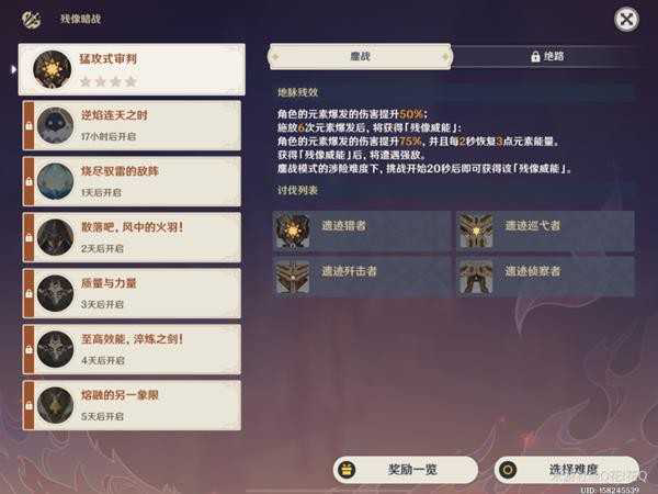 施放6次元素爆发后强敌才会出现,此时也会触发残像威能,爆发伤害提高,强敌出现后不要管其他小怪,快速只打它一个,切记它坐下的时候会回血,不要让它回,清理完一只另一只会马上出现!直接去打。