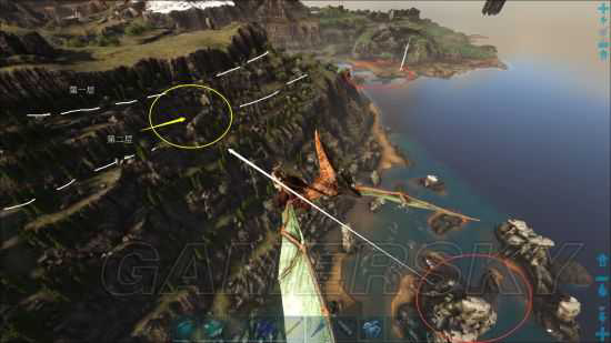下面是离黑曜石进的地洞入口,看全景图中黄圈圈住的石柱位置。