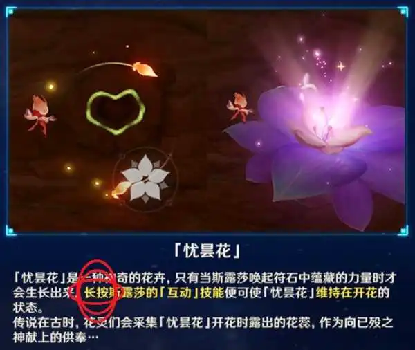 不长按的话,花蕊停留时间很短。如果长按互动技能,是会直接解除斯露莎的互动状态立刻回到角色本体,可以直接前去采集。