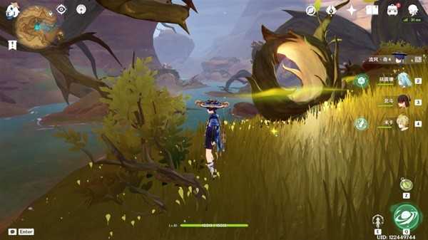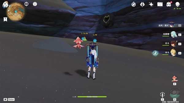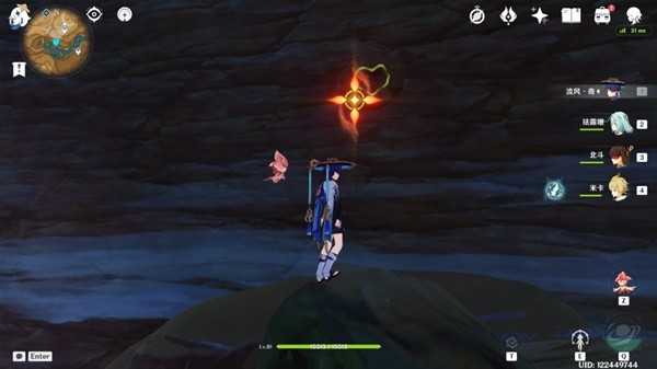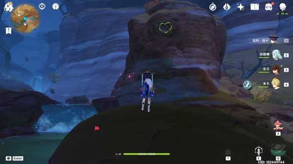 如下图,上方传送点到达后,往下的洞穴直接深入就能发现,旁边有丘丘人。