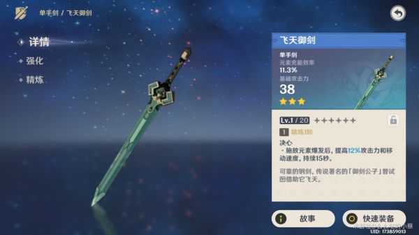 飞天御剑,主词加元素充能,技能元素爆发后提升攻击力和移动速度【适合所有单刷打铺角色,行秋和点赞哥强推】