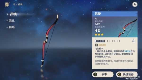 信使,主词加爆伤,技能;重击命中要害可以额外造成必定暴击的伤害,10秒一次CD时间精炼不会减少【适合全部要打输出的射手,缺点打弱点麻烦】3星传奇武器之一。