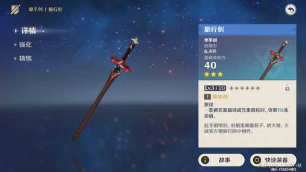旅行剑,主词防御力,技能获得元素晶球或元素微粒时,回复生命【适合阿贝多】