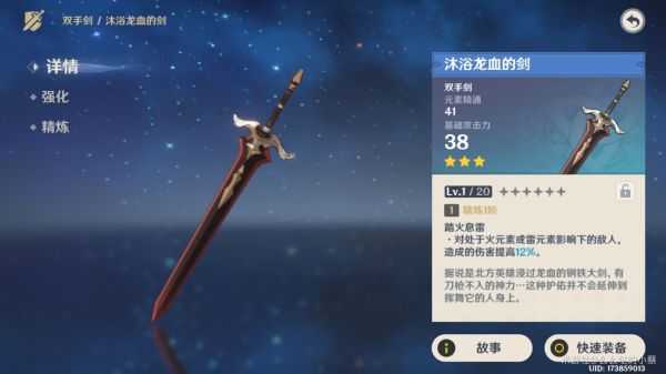 龙血剑,主词元素精通,技能;对处于火元素或者雷元素影响下的敌人造成伤害提升【迪卢克,雷泽,北斗】