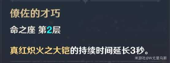 元素爆发持续时间延长3秒,使大招真空期变短,更容易叠加护盾。