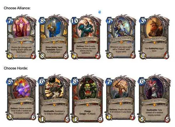 法术卡:选择联盟或部落,获取2张该阵营的传说勇士并使其法力值消耗减少(2)点。