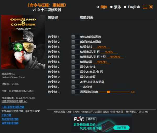 《命令与征服重制版》作为一款RTS游戏还有极具难度的,很多玩家的操作可能都不是很好所以使用修改器可以大大改善游玩体验。下面请看由“风灵月影”带来的《命令与征服重制版》修改器及用法教学,希望对大家有用。