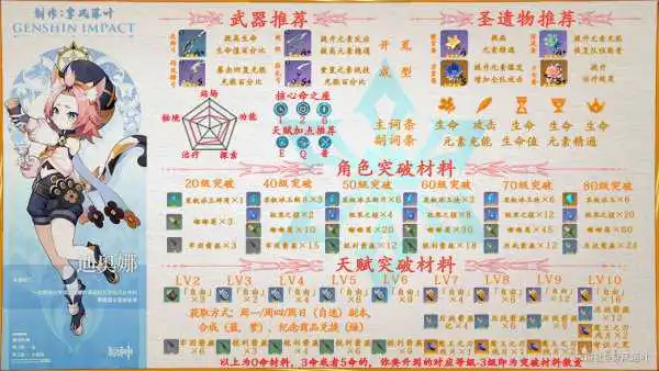 《原神》中迪奥娜是一位带有护盾技能的角色,作为辅助非常好用,不知道怎么培养她的玩家请看下面“穿风落叶”分享的《原神》迪奥娜配装推荐及突破材料一览,希望能够帮助大家。