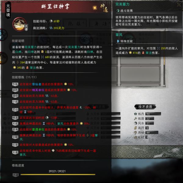 神通在这个流派里面算是比较鸡肋的(PVE能用,PVP几乎用不到),但既然要选,那一定也要选最适合的。在研究了各个流派的神通以后,我的选择是掌神通,在能破防的情况下掌神通的伤害系数应该是最高的,平常最大问题是敌人一直在动,经常没法吃全伤害,但对这个流派来说敌人是被控到死的,伤害能全吃,能收到最好的效果,神通词条随便选就行了,锦上添花而已。(要用这个记得选拳掌精通)