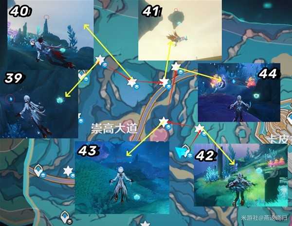 38:从37的位置往西北方向的上方看,就可以看见一颗神瞳啦;